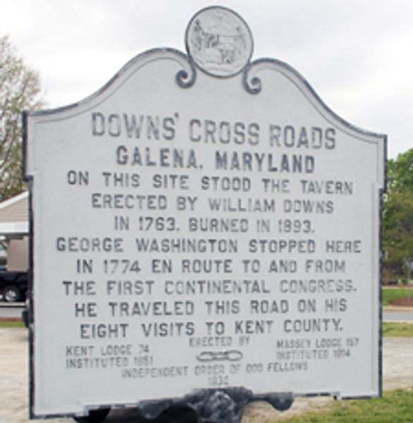 Located at the crossroads of Maryland Routes 213 and 290, Galena's early prosperity was fueled by its strategic position near the Sassafras River, making it a key stop for travelers and a hub for businesses and visitors. Originally called Down’s Cross Roads, the town was named after William Downs, who built an inn and tavern that became the heart of the early village. The inn was essential for weary travelers in need of rest, food, and a place to care for their horses. Even George Washington stopped at the inn on his eight visits to Kent County, passing through Galena on his way to and from the First Continental Congress and Mount Vernon.