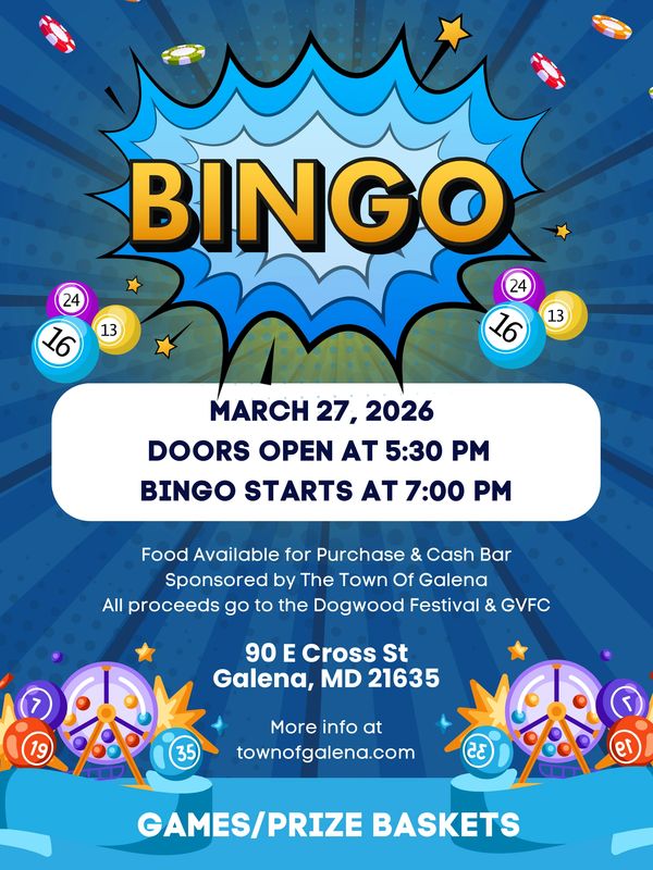 Join us for a fun-filled evening of Bingo on Friday, March 27, 2026 at 90 E. Cross Street, Galena, MD 21635.